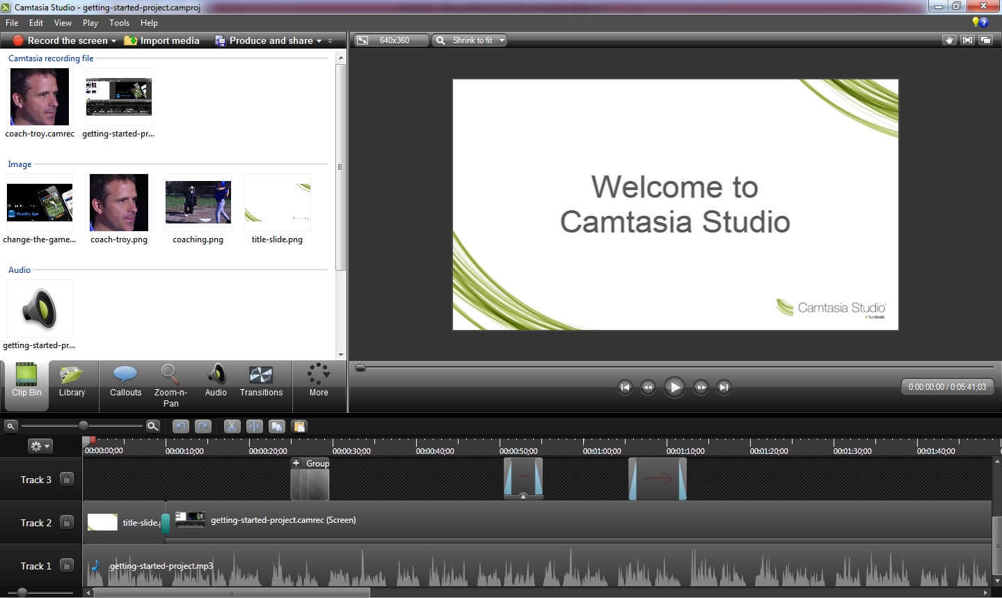 - Записывайте фрагменты длиной более 30 секунд: Camtasia оптимизирует длинные фрагменты, для коротких эпизодов вы должны будете самостоятельно указывать панорамную анимацию и увеличение.