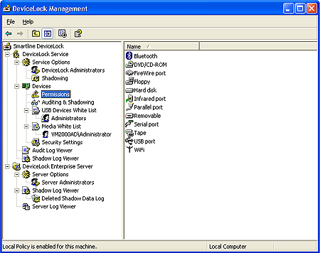 Несколько слов о программе. При помощи DeviceLock администратор компьютера или домена может контролировать доступ пользователей к дисководам, DVD/CD-ROM, другим сменным устройствам, адаптерам WiFi и Bluetooth, а также к USB, FireWire, инфракрасным, COM- и LPT-портам. Кроме функции контроля доступа, DeviceLock позволяет осуществлять протоколирование и аудит использования устройств на локальном компьютере как отдельными пользователями, так и группами. Для хранения записей аудита DeviceLock использует стандартный журнал Windows, что позволяет просматривать их как с помощью стандартной программы просмотра событий, так и встроенного средства.