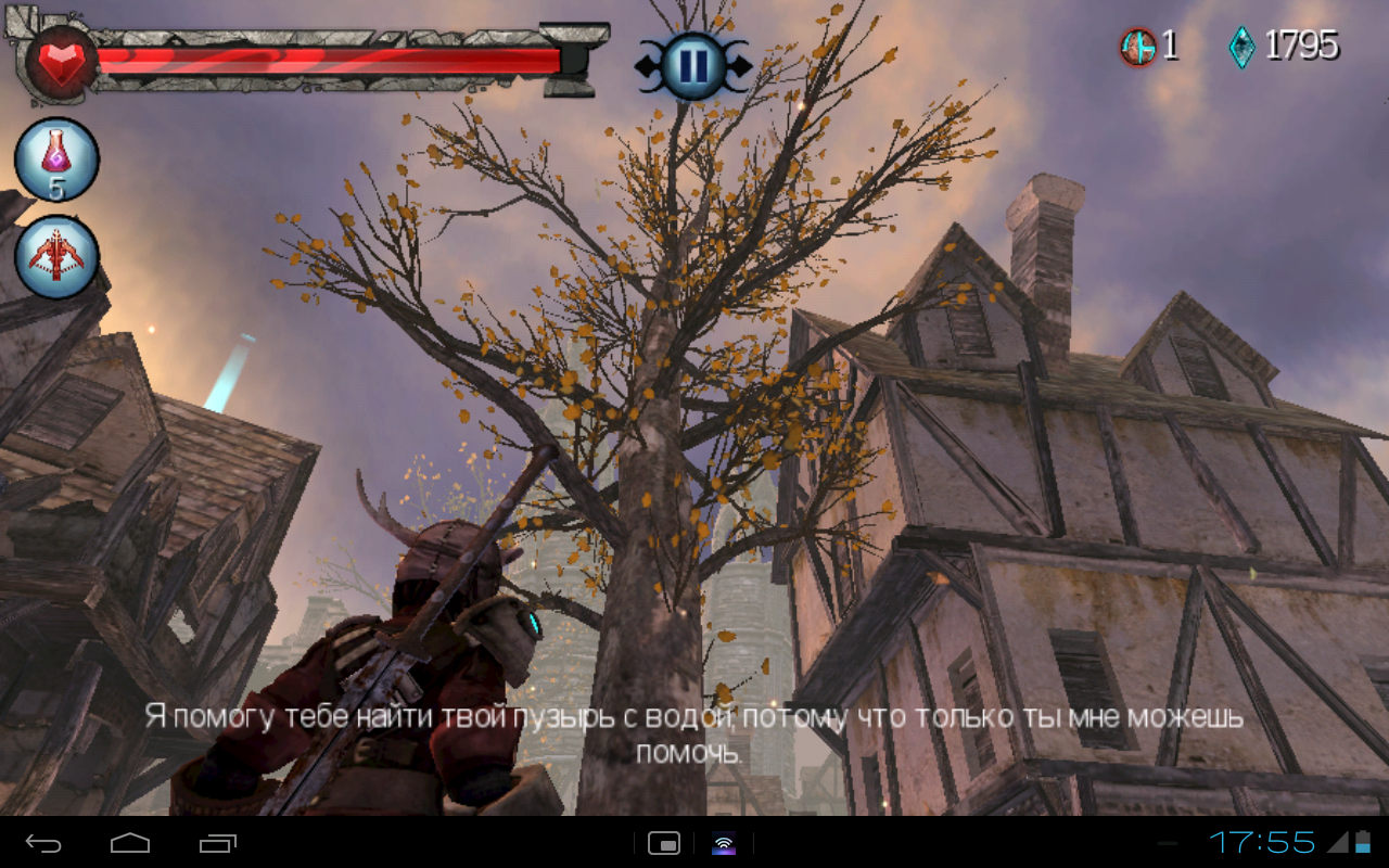 Итак, мы переходим к разговору о графике, точнее — к сравнению графики на разных платформах. Мы попробовали поиграть в Horn на четырех устройствах: это The New iPad с SoC Apple A5X и разрешением экрана 2048×1536, ASUS Transformer Pad Infinity с NVIDIA Tegra 3 T33 и разрешением экрана 1920×1200, ASUS Eee Pad Transformer Prime с NVIDIA Tegra 3 T30 и разрешением экрана 1280×800 и Sony Tablet S с NVIDIA Tegra 2 и тем же разрешением. Скриншоты будут следовать именно в таком порядке.