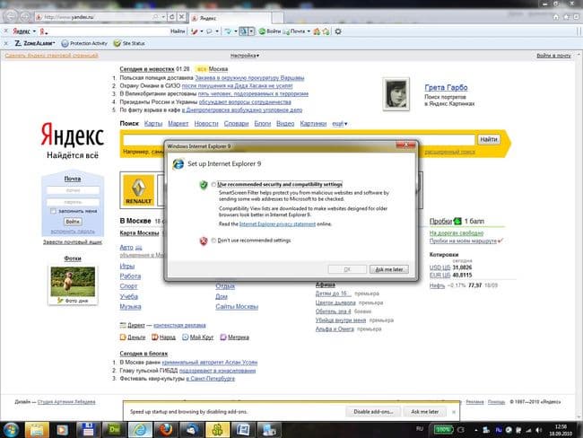 Говорить собственно о безопасности браузера и его способности противостоять попыткам проникновения в систему пока преждевременно. В общем-то, и материалов на эту тему найти не удалось, поэтому разговор о безопасности в этом смысле пока отложим. На презентации ведущие сосредоточились на двух особенностях IE9, которые должны повышать стабильность и защищенность браузера при работе в интернете. Поговорим о них и мы.