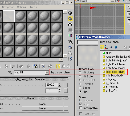 Более того, phenomena "light_color_phen" будет виден в 3ds max как обычный световой шейдер с двумя настроечными параметрами - температурой и интенсивностью.