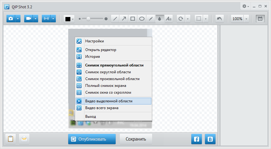 QIP Shot — приложение для создания скриншотов, записи видео с дальнейшими редактированием и онлайн-трансляцией.
