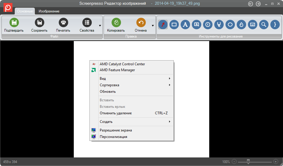 Скриншоты помещаются в рабочую область. Выбрав изображение, можно открыть его во встроенном редакторе. Здесь доступны такие действия, как изменение размера, применение эффектов (тени, отражение, закругленные углы), добавление различных аннотаций. В бесплатной версии Screenpresso править файл позволяется лишь единожды.