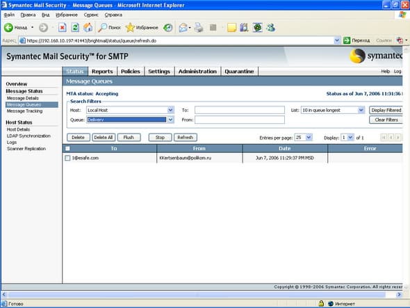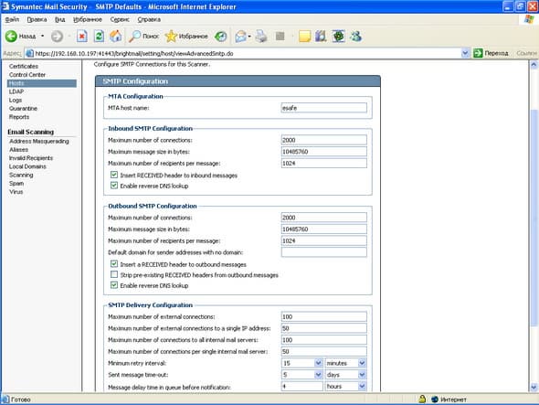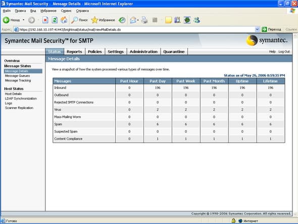 Продукт Symantec Mail Security for SMTP позволяет компаниям любого размера легко решить проблему защиту почтового шлюза от вирусов и нежелательной почты. Поддержка разнородных платформ (Windows, Linux, Unix) позволяет легко приспособить и масштабировать данное решение для любой ИТ-инфраструктуры, обеспечивая при этом удобный и легкий способ мониторинга приема и передачи сообщений электронной почты, а также контроля содержимого и вложений для эффективного функционирования почтовой системы. Графический интерфейс управления, доступный из любой точки корпоративной сети, позволяет администратору почтовой системы легко и просто отслеживать прохождение и обработку любого количества электронных сообщений.