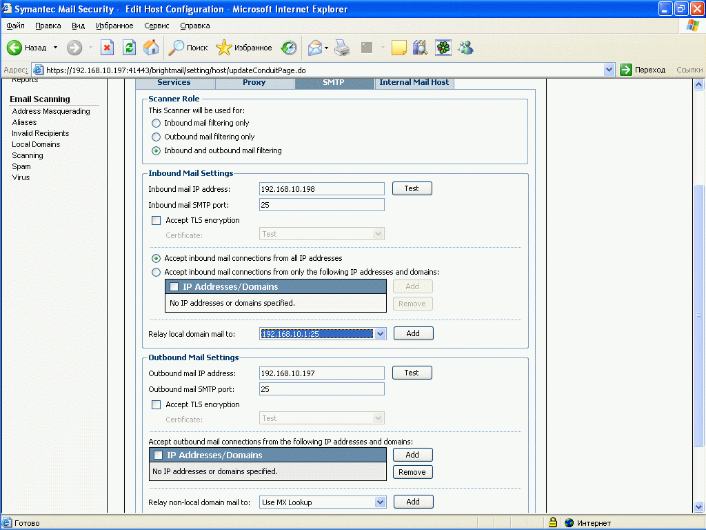 Сфера применения: защита SMTP трафика на уровне шлюза от вирусов и спама