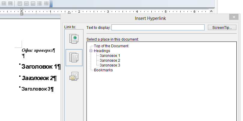 Из возможностей, которые определяют структуру документа, стоит отметить вставку нумерации, разрыва страниц, сносок. Вставка содержания недоступна. Впрочем, при открытии диалога «Insert Hyperlink», обнаруживаются весьма удобные возможности для создания ссылок (якорей) на заголовки и закладки документа.