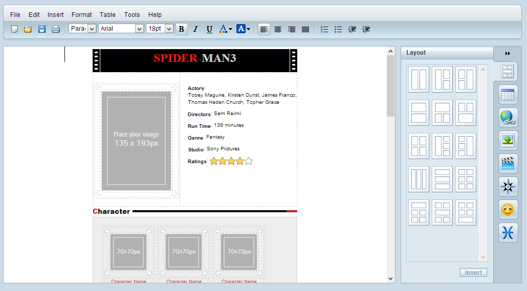 В строке состояния расположена панель рисования с широким выбором автофигур, которые можно нарисовать прямо на странице (а не в отдельном окне), поменяв затем их расположение и размер. Доступна сетка, но ее предназначение не очень понятно: все равно расставлять фигуры приходится на глаз. Вставка таблиц и мультимедиа в наличии, тем не менее список форматов порядочно устарел. Вместо загрузки файлов AVI, MPEG и им подобных хотелось бы видеть вставку роликов с Youtube, Vimeo. К звуку и изображениям те же претензии: не хватает интеграции с социальными сервисами.