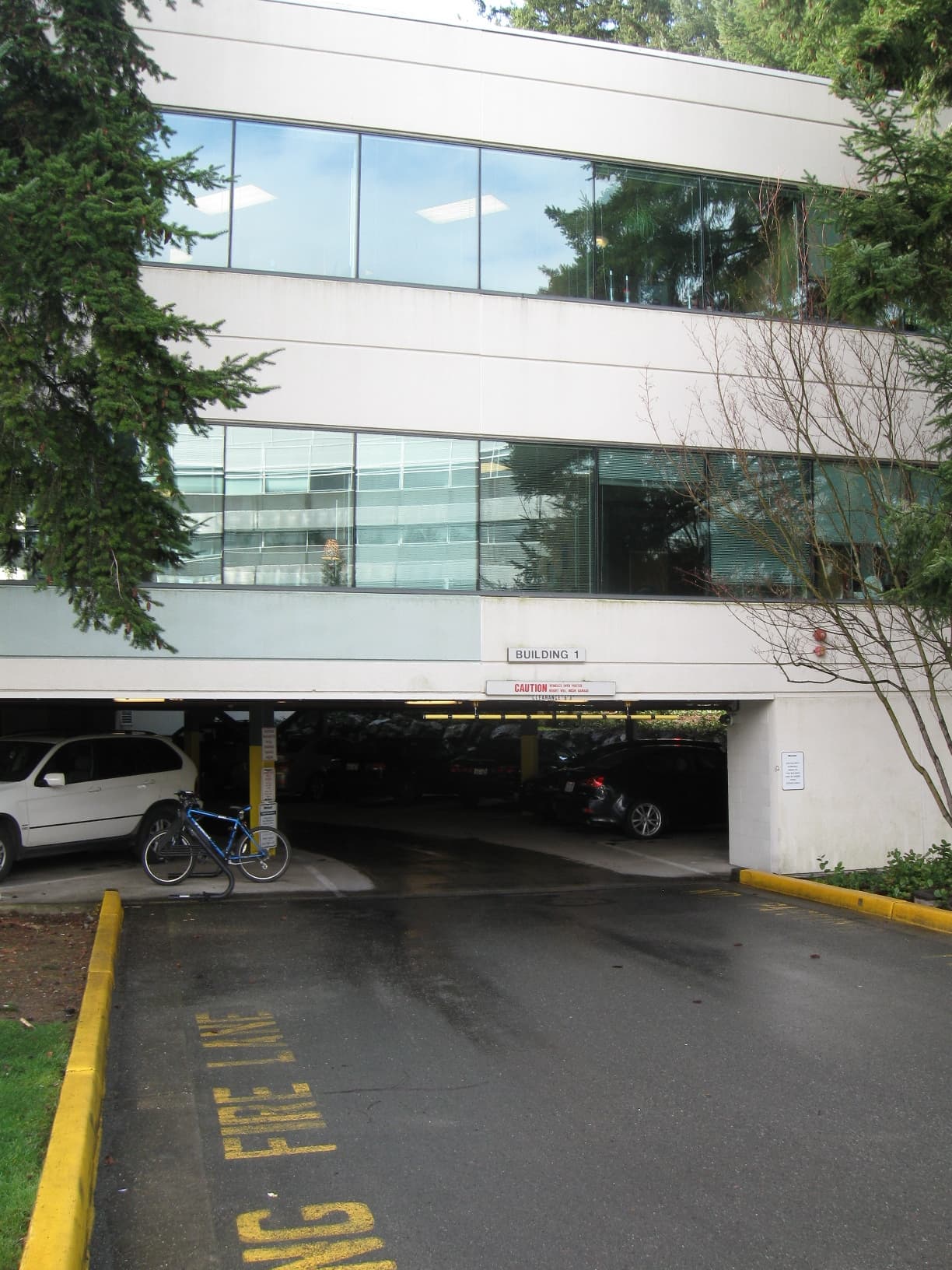 Так выглядят все корпуса ранней постройки — с первого по десятый. Впрочем, посмотрите еще раз на указатель — на нем нет здания номер 7. Нумерация велась и ведется не по дате начала строительства, а по дате оформления разрешений на него. Седьмое здание должно было располагаться рядом с шестым, но компания в середине 1980-х годов расширялась очень быстро. Для размещения новых сотрудников корпуса 8, 9 и 10 было решено построить вдвое большего размера, и место, отведенное для седьмого, оказалось занято.