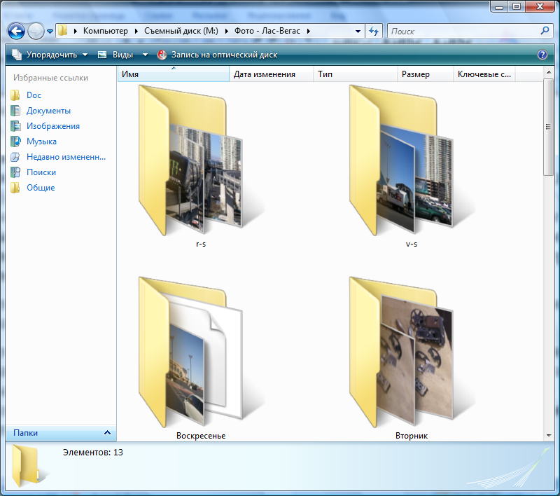 Режимов отображения содержимого папки и возможностей управления этими режимами способами стало больше: окна папок теперь масштабируемые. Раньше каждый из режимов (список, таблица, крупные и мелкие значки и др.) был, как бы обособлен друг от друга: из одного режима можно было перейти в другой, но различия между ними были выражены достаточно резко. В Vista режимы стали всего лишь разными масштабами отображения. Каждый из режимов получил несколько вариантов, отличающихся размером изображений.