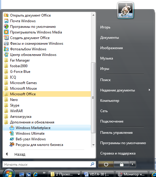 Впрочем, лазить по меню вовсе не обязательно. Можно набрать в нижнем окошке несколько букв из названия программы или команды, система «прошерстит» список и оставит в нем лишь команды, соответствующие запросу (аналогичный механизм реализован в проводнике и в панели управления).