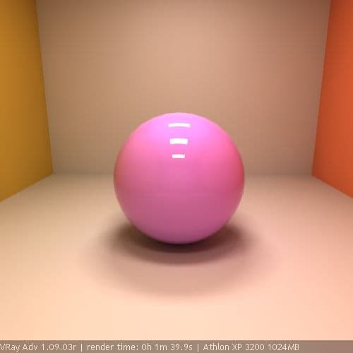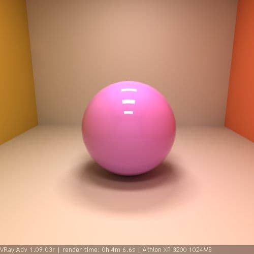 Вторая компонента освещенности объектов определяется зеркальным (или близким к зеркальным) отражением от окружения и прозрачностью самого объекта. Для ее вычисления был разработан метод трассировки лучей - ray tracing method. Этот метод отслеживает траектории лучей света, начиная от камеры, до первой поверхности пересечения и затем - в зависимости от прозрачности или отражающих свойств поверхности, определяется направление дальнейшего распространения луча. Метод трассировки лучей от камеры впервые позволил учесть в расчетах освещенности объекта его окружение и был более эффективен, чем отслеживание лучей от источников света, поскольку обрабатывал только достигающие камеру лучи. Одним из недостатков классического метода трассировки лучей является «жесткость» получаемого изображения - излишняя четкость контуров, теней, цветов. Поэтому в дальнейшем была разработана модификация, известная как distribution ray tracing (DRT). Суть DRT в том, что при каждом пересечении трассируемого луча с поверхностями вдоль его траектории, из каждой точки пересечения строится не один, а несколько лучей. Этот процесс несколько напоминает цепную реакцию. Такой подход позволил рассчитывать размытые отражения и преломления (известные также как fuzzy, blurry или glossy отражения и преломления), но за счет огромного увеличения объема расчетов. Модель DRT реализована в свойствах отражений и преломлений материалов VRay при помощи параметра Glossy. Из-за высокой стоимости расчетов DRT, медленность расчета glossy-материалов VRay стала «притчей во языцех».