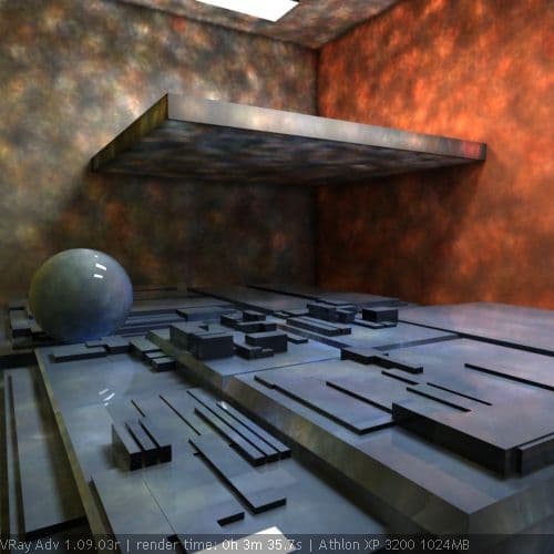 Описанные выше параметры позволяют VRay динамически принимать решения о количестве сэмплов для расчета той или иной конкретной величины непосредственно в процессе расчетов. Если Amount для importance sampling и early termination имеют нулевые значения, мы получим рендер, максимально возможный для VRay по качеству. Время расчета тоже будет максимальным, а количество сэмплов будет приближаться к количеству subdivs, указываемых для GI в настройках источников света. Если Amount для importance sampling и early termination равны единице, рендер будет минимального (но это вовсе не означает - плохого) качества, время расчета тоже будет минимально возможным, а количество сэмплов будет приближаться к значению, указанному в Min. Samples. Это как бы два противоположных полюса, в пределах которых расположены все промежуточные настройки, затрачиваемое на расчет время и степень качества рендера.