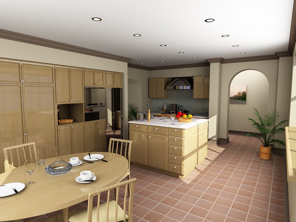 Следует также придерживаться принципа соответствия размеров объектов сцены размерам реальных объектов. Необходимость этого обязательного требования продиктована использованием закона затухания интенсивности освещения с расстоянием в любой современной рендер-программе, рассчитывающей Global Illumination.