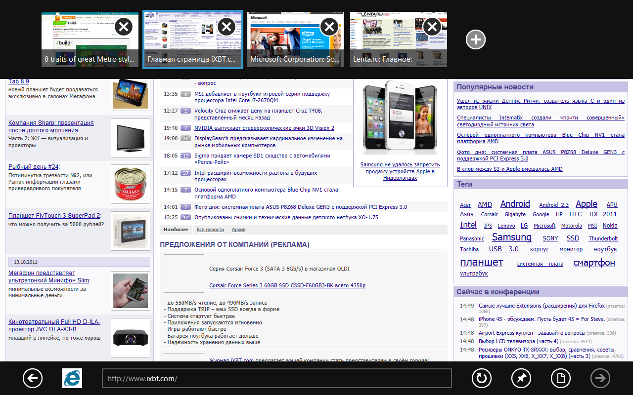 Итак, хотя большинство деталей Windows 8 обсуждать еще преждевременно, сборка Developer Preview дает достаточно четкое представление о том, в каком направлении будет развиваться новая ОС. Microsoft, пожалуй, впервые сделала столь принципиальный разворот в сторону потребительского рынка, где она пока не может похвастать большими успехами. Совершенно очевидно, что Metro и WinRT прежде всего ориентируются на планшеты (в том числе на платформе ARM) и другие мобильные устройства, принципы использования которых сильно отличаются от таковых для традиционных ПК. А вот удастся ли редмондской корпорации сделать Windows 8 одинаково удобной для всех форм-факторов, мы узнаем из бета-версии, которая ожидается к концу этого года.