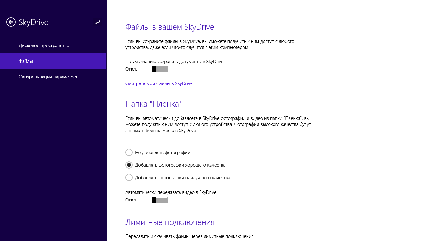В самом конце можно сразу же подключить SkyDrive, так как настольный клиент этого сервиса (с синхронизацией и прочим) интегрирован в Windows 8.1 Preview: