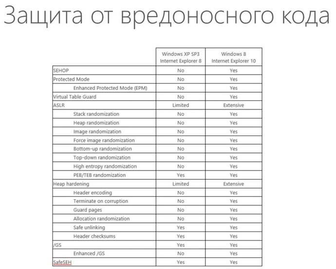 Поэтому за 12 лет восприятие защищенных систем изменилось радикально. Сейчас уже на этапе разработки огромное внимание уделяется безопасности и защищенности системы, алгоритмы и код проходят специальные проверки, системы оценивают на сопротивляемость проникновению извне, внедряется все больше защитных технологий. Проблема в том, что на момент разработки Windows XP большинства таких технологий просто не существовало. Например: