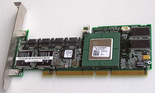 Недавно мы познакомились с «набором» Adaptec Serial ATA RAID 2410SA Enclosure Kit, состоящим из четырехпортового SATA RAID контроллера среднего ранга AAR-2410SA и корзины для четырех SATA-дисков. Напомню, что одним из основных достоинств собственно низкопрофильного четырехпортового SATA RAID контроллера Adaptec AAR-2410SA для шины PCI 64 бит/66 МГц (совместимого и с шиной PCI 32 бит/33 МГц), позиционируемого производителем как «идеальное решение для рабочих станций и серверов начального уровня», является наличие кэш-памяти объемом 64 Мбайт и поддержка дисковых массивов уровней 0, 1, 5, 10 и JBOD.