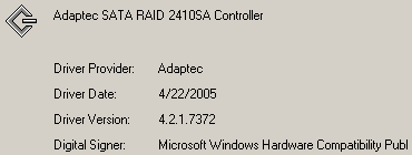 - RAID 5, 3 диска, Adaptec AAR-2410SA — 228871 Мбайт (223,5 Гбайт);