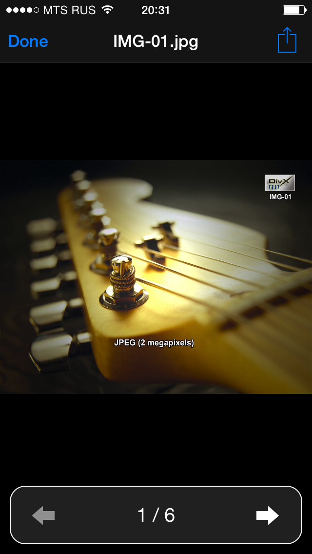 Возможности программы для iOS немного отличаются. В частности она может показывать и изображения в формате tiff, а в контекстном меню доступны операции загрузки файла и публикации его в популярных социальных сетях. Из музыкальных форматов пропал aac, а для видео остался только mp4.