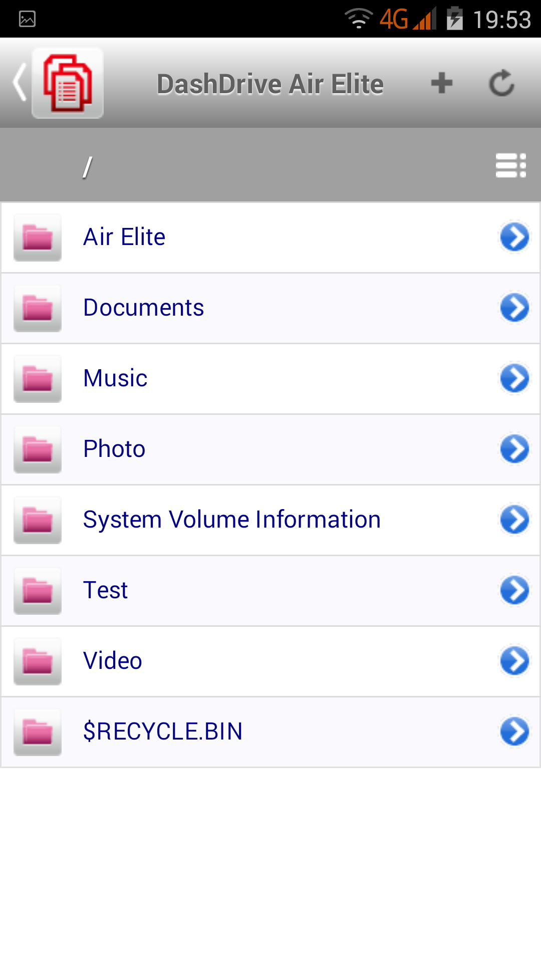 Для смартфонов и планшетов можно использовать стороннее программное обеспечение, поддерживающее описанные выше протоколы, или же установить фирменную программу DashDrive Air Elite, которая есть в версиях для Android и iOS. Она позволяет работать при прямом подключении к беспроводной сети накопителя, так и через роутер. В ней также есть страница настроек, полностью аналогичная описанному выше веб-интерфейсу.