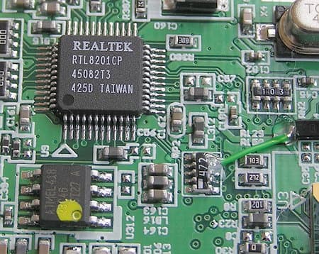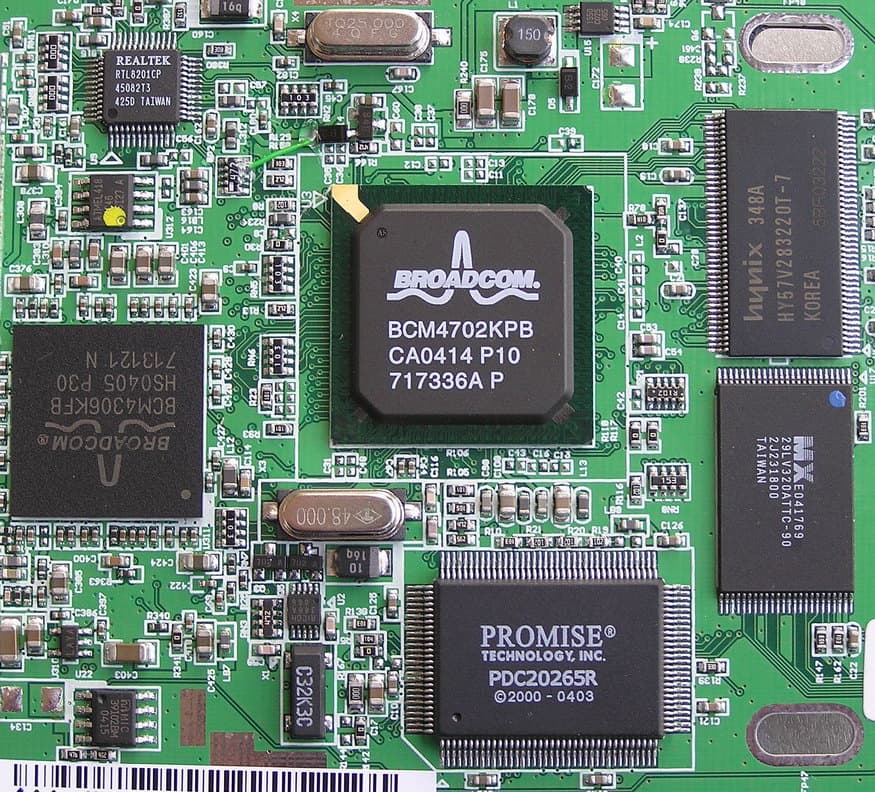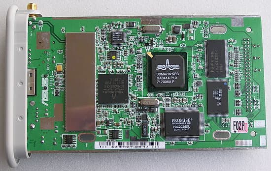 Электронным сердцем устройства является сетевой процессор (и роутер) BCM4702 от Broadcom (с отдельными микросхемами ОЗУ и ПЗУ; в последней, видимо, зашито компактное ядро одной из версий Linux ), к которому подключается (очевидно, по шине PCI) два сетевых контроллера — беспроводной 802.11g на чипе Broadcom BCM4306 и контроллер Ethernet 10/100 на популярном для материнских плат чипе Realtek RTL8201,