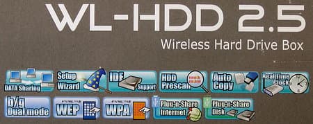 WL-HDD2.5 беспроводным образом к интегрированному на материнской плате адаптеру WiFi-g IEEE 802.11g;