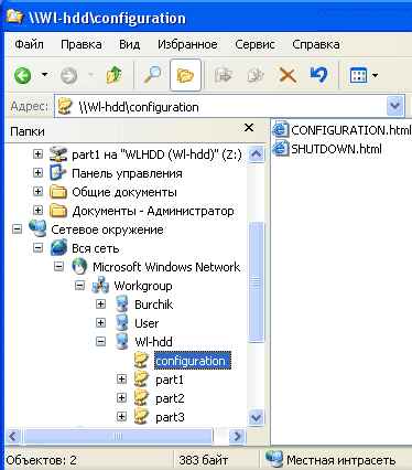 По умолчанию в нем доступна папка configuration, в которой находятся ссылки на утилиты настройки параметров и выключения. Если на винчестере есть приемлемые для устройства разделы (см. таблицу 1), они также отображаются как папки part 1, part 2 и так далее, соответственно их числу (см. скриншот выше).