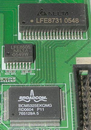 Ethernet-часть роутера обеспечивается свичем Broadcom BCM5325E и Delta'вскими PHY-схемами LFE8731 и LFE8505 (об остальной начинке — во второй части):