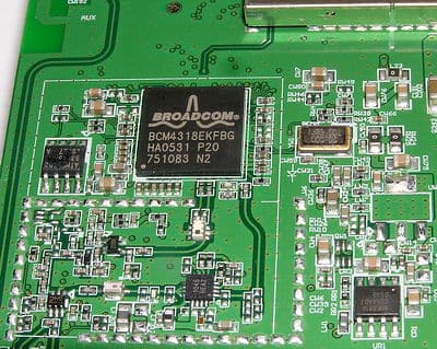 Беспроводная часть расположена «снизу» и прикрыта несъемным экраном. За беспроводную связь отвечает контроллер BCM4318E от Broadcom.