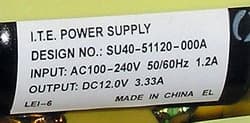 Блок питания достаточно компактен, хотя и обеспечивает выходной ток до 3,3 А с напряжением +12В при питании от напряжения ~110-240 В.