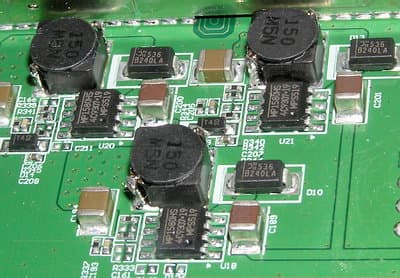 Напряжение +12 В с блока питания по спаренным проводам подается на основную плату роутера, где уже преобразуется импульсными и линейными стабилизаторами в более низкие +5 В, +3,3 В и др. для питания электроники винчестера и схем роутера.