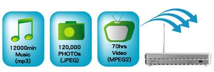 Возможность быстрого расширения объёма внутреннего накопителя и организации RAID-массивов уровней 0 и 1 при помощи подключаемых USB -носителей. Максимальный размер подключаемого винчестера — 640 Гбайт, суммарный объём — до 1,2 Тбайт. При этом нужно иметь в виду, что организовать в RAID-массив можно только подключаемые диски.