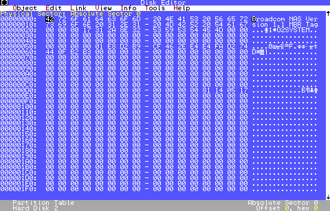 Просмотр таблицы разделов в DiskEdit (винчестер вынут из роутера и подключен напрямую к ATA-порту ПК) выявил следующую «говорящую» запись (см. справа):