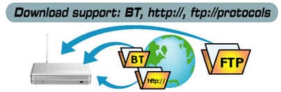 Download Master (мастер загрузки) — весьма полезная функция, позволяющая при помощи WL-700gE загружать файлы из Интернета без использования компьютера. При помощи соответствующей утилиты или Web-интерфейса конфигурирования вы формируете список заданий и WL-700gE закачивает запрошенные файлы. Поддерживаются до 10 одновременных закачек по HTTP/FTP и до 7 BitTorrent. Download Master интегрируется в контекстное меню, так что добавить нужный файл в очередь закачки можно всего в пару кликов мыши.