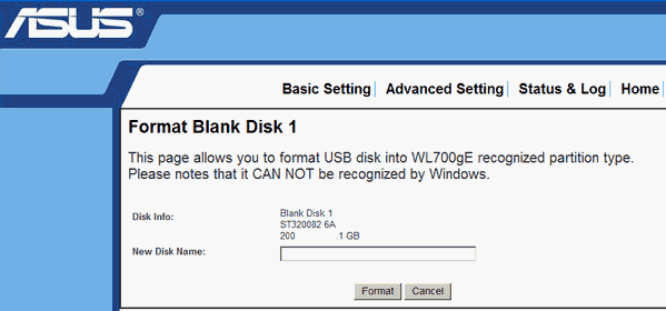 Если же вы предоставите возможность WL-700gE отформатировать ваш USB-винчестер, то имейте ввиду, что даже соответствующее предупреждение