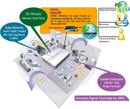 Функции iTune Server + UPnP AV Server — первый предоставляет возможность использования интерфейса iTune для управления музыкальными файлами, а второй позволяет проигрывать медиафайлы с WL-700gE на телевизоре посредством так называемых Digital Media Adapter.