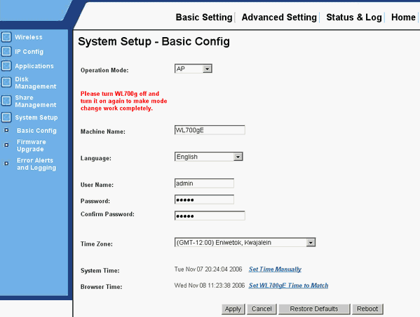 Упаси вас бог делать это — WL-700gE напрочь исчезает с радаров и в рабочее состояние его приходится возвращать сбросом параметров в заводские!
