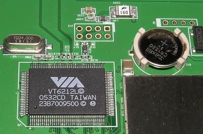Рядом с ним расположен и 4-портовый контроллер интерфейса USB 2.0, реализованный на чипе VIA VT6212L, также используемом в сетевых накопителях Maxtor, WD и ряде других.