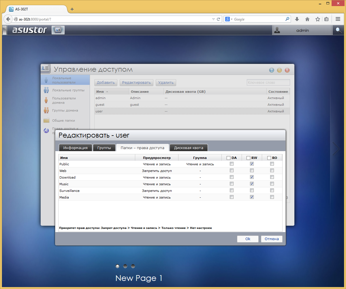 Для накопителей поддерживаются все популярные файловые системы, включая NTFS, EXT4 и HFS+. Каждый раздел представляется отдельным сетевым ресурсом. При этом пользователь может изменить права доступа к нему. Отметим возможность работы и с оптическими дисками (только чтение).