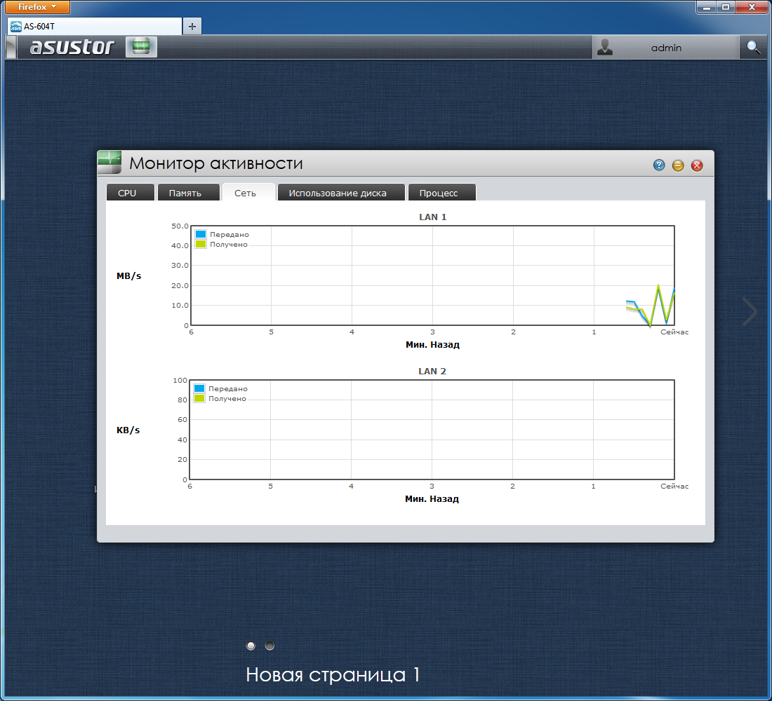 Проверить текущее состояние сетевого накопителя можно через «Монитор активности». В нем в графическом виде представлены загрузка процессора и оперативной памяти, активность сетевых интерфейсов. Кроме того, есть таблица процессов и информация о занятости дисковых томов.
