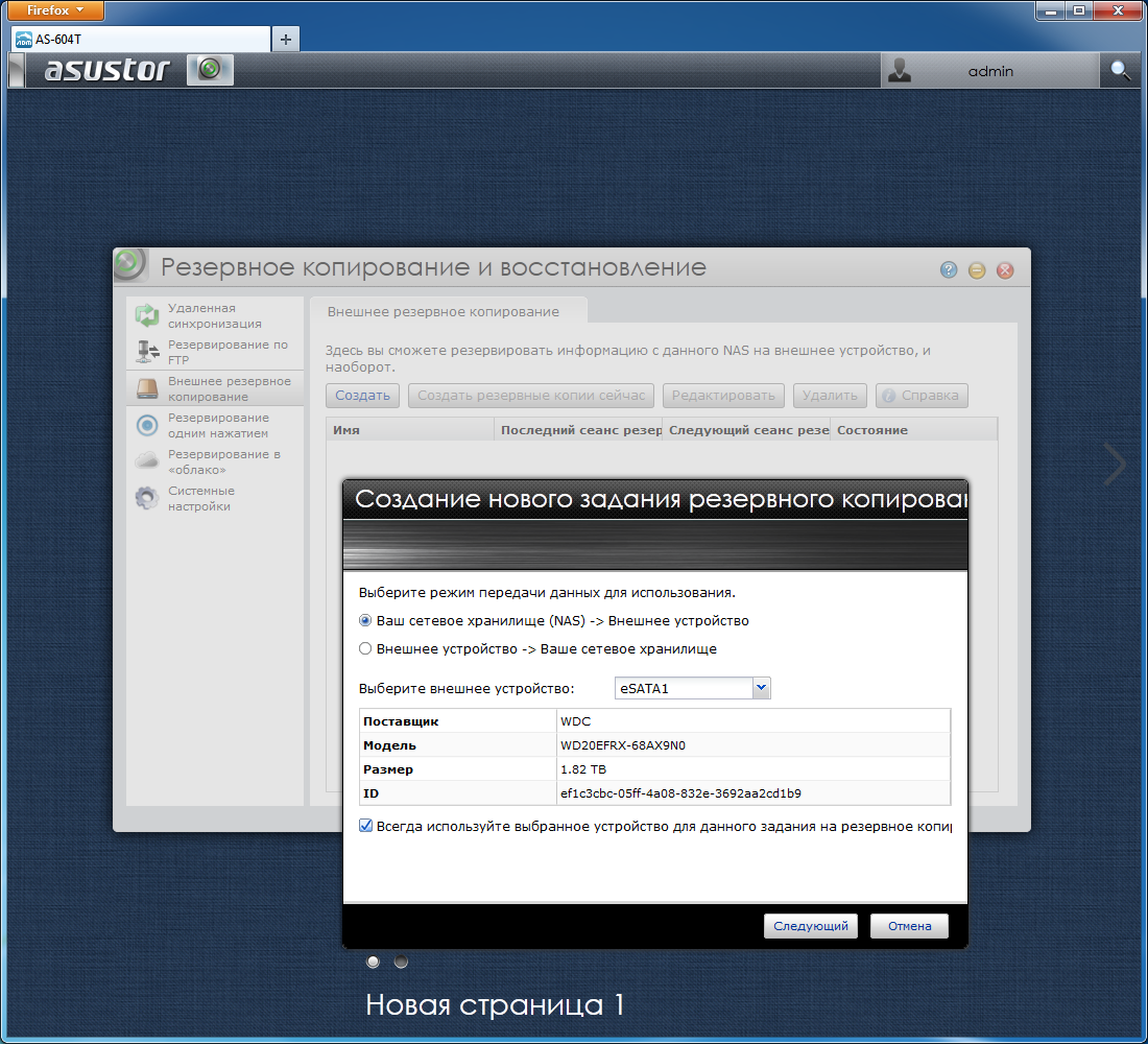 Резервное копирование работает по протоколу Rsync и FTP. При этом устройство может выступать как клиентом, так и сервером. Правда скопировать данные на устройство другого производителя по Rsync не получилось — авторизация не проходила. Но в обратном направлении и с протоколом FTP проблем не было. Заданий можно запрограммировать сразу несколько, при этом они могут работать по расписанию. Аналогичные возможности есть для копирования на внешние накопители. Программа резервного копирования может работать и с Amazon S3.
