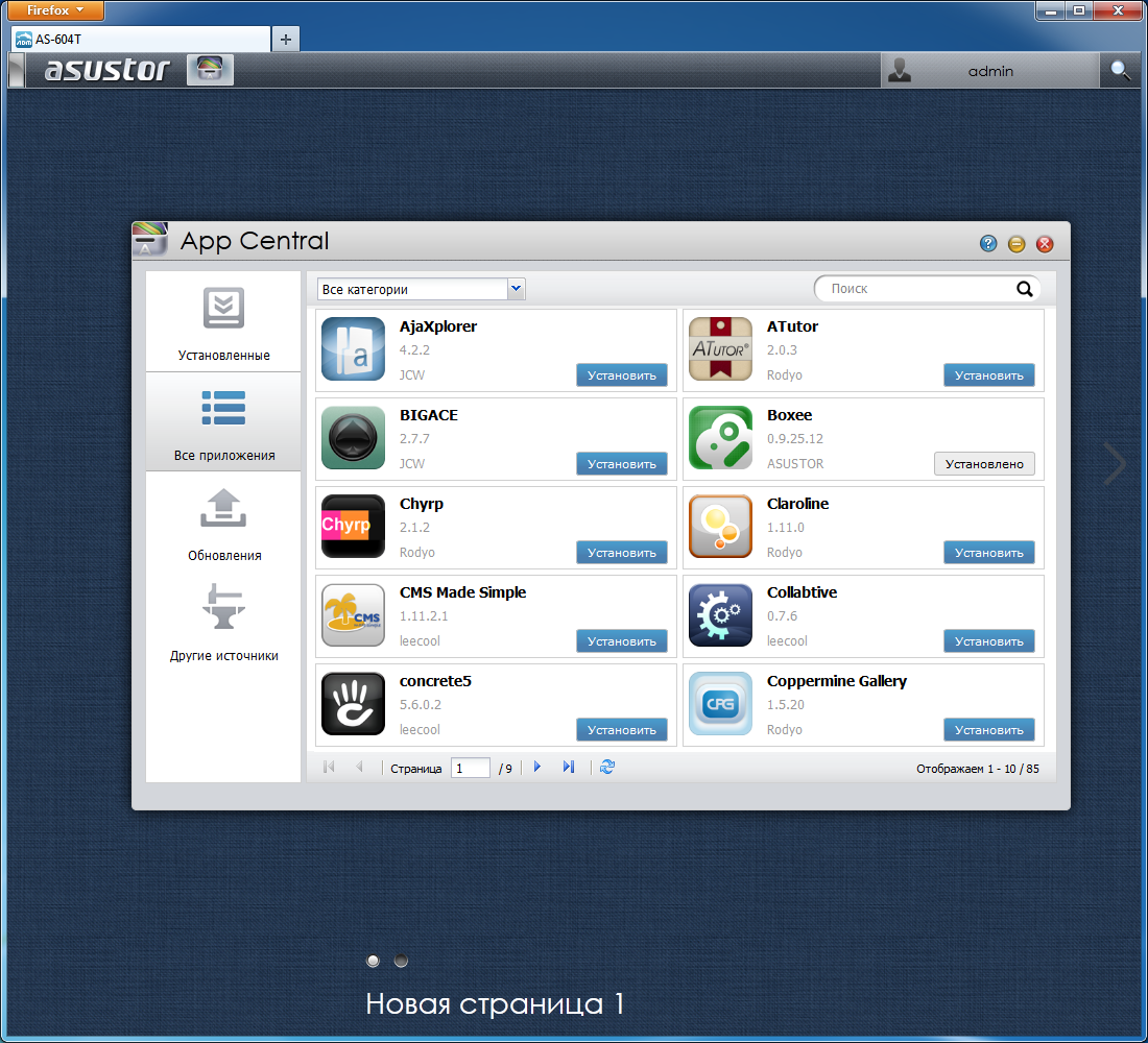 Следуя современным тенденциям, производитель реализовал дополнительные функции в виде модулей. Устанавливать их можно через штатный каталог прямо из web-интерфейса или же загрузив файл программы в специальном формате. На момент написания статьи в каталоге были представлены 85 приложений, организованных по тематике в два десятка категорий. Вся работа с модулями осуществляется через приложение «App Central». Здесь доступны несколько операций: загрузить, обновить, удалить, запустить. Среди программ встречаются системы управления контентом, блоги, фотоальбомы, WiKi и другие основанные на web-технологиях сервисы. Перечислять все приложения здесь не будем (познакомиться с ними можно на отдельной странице сайта), а отметим только самые интересные.