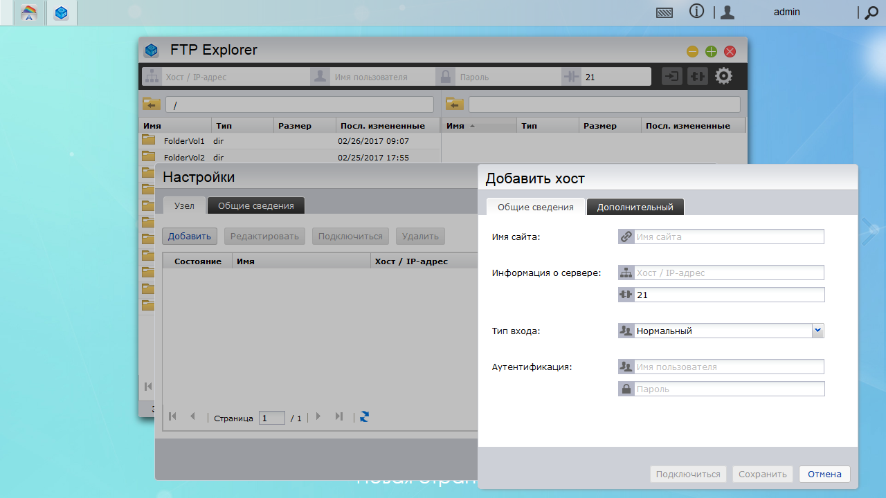 Также в списке модулей Asustor присутствует FTP Explorer. Его сложно считать полноценным решением для резервного копирования. Но в некоторых ситуациях он может оказаться полезным. По сути, он представляет собой автономный FTP-клиент, работающий через веб-интерфейс прямо в браузере. Так что его можно использовать в интерактивном режиме для операций удаленного доступа к серверам.