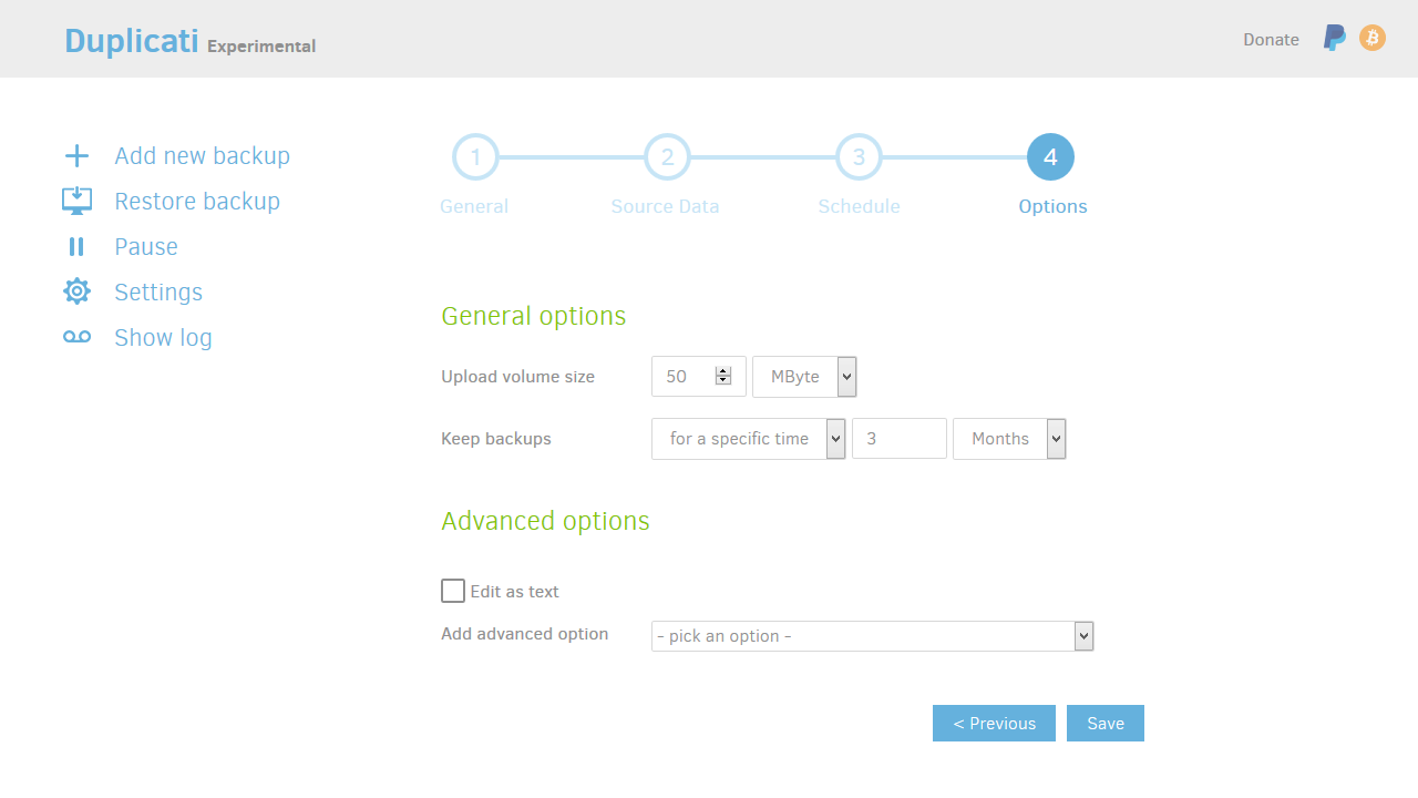 Программа резервного копирования Duplicati интересна тем, что поддерживает большое количество протоколов и сервисов при выборе места назначения (в дополнение к локальным папкам сетевого накопителя). Среди них FTP, WebDAV, Swift, Amazon Cloud Drive, Dropbox, Google Drive и множество других. Управление производится из собственного веб-интерфейса модуля. Предусмотрены выбор папок и файлов для резервного копирования, расписание, шифрование, сжатие, дедупликация, инкрементальный режим, хранение версий и другие опции. Для оценки возможностей программы можно попробовать ее версию для ПК.