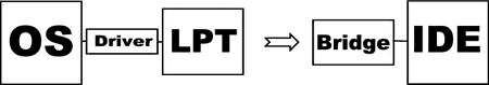 Идея подключения устройств через мосты стала развиваться в новых направлениях. К тому времени практически все более-менее современные компьютеры оказались оснащенными такой периферийной шиной передачи данных, как USB. Хоть USB и была самой распространенной шиной, но в то время она же оказалась самой невостребованной. Достаточно перспективная разработка, интегрированная компанией INTEL в свои чипсеты и оттого практически ничего не стоящая, она присутствовала на многих материнских платах, но отсутствие устройств, которые могли бы работать с этой шиной, превращало ее в красивую игрушку. Теперь час пробил. Фактически USB разрабатывалась как периферийная шина для подключения компьютерной периферии вне корпуса машины по стандарту plug'n'play. Старичок LPT просто не мог устоять под таким напором. Итак, что могли получить пользователи при переходе с моста LPT-IDE на мост USB-IDE.
