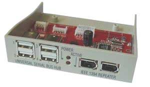 В одном месте у вас есть FireWire, в другом — только USB, а так хочется, к примеру, принести приятелю пару новых фильмов в формате DVD, но переписанных на жесткий диск. Однако накопитель у вас FireWire, а у вашего приятеля только USB 1.1, ну не заводить же ему для этого FireWire контроллер. Ну, контроллер может и стоит завести, тем более что производители периферии давно намекают на необходимость наличия всех широко используемых периферийных шин в каждом компьютере. Взгляните только на этот универсальный хаб, не правда ли, симпатично и практично?