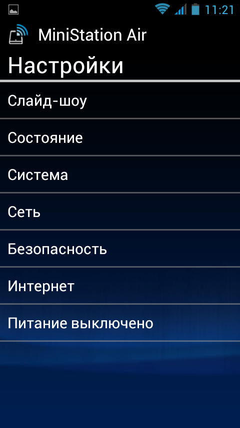 В этой же программе есть возможность изменения параметров работы накопителя (в частности имени основной беспроводной сети и параметров безопасности), настройки подключения к внешнему роутеру и выключения питания.