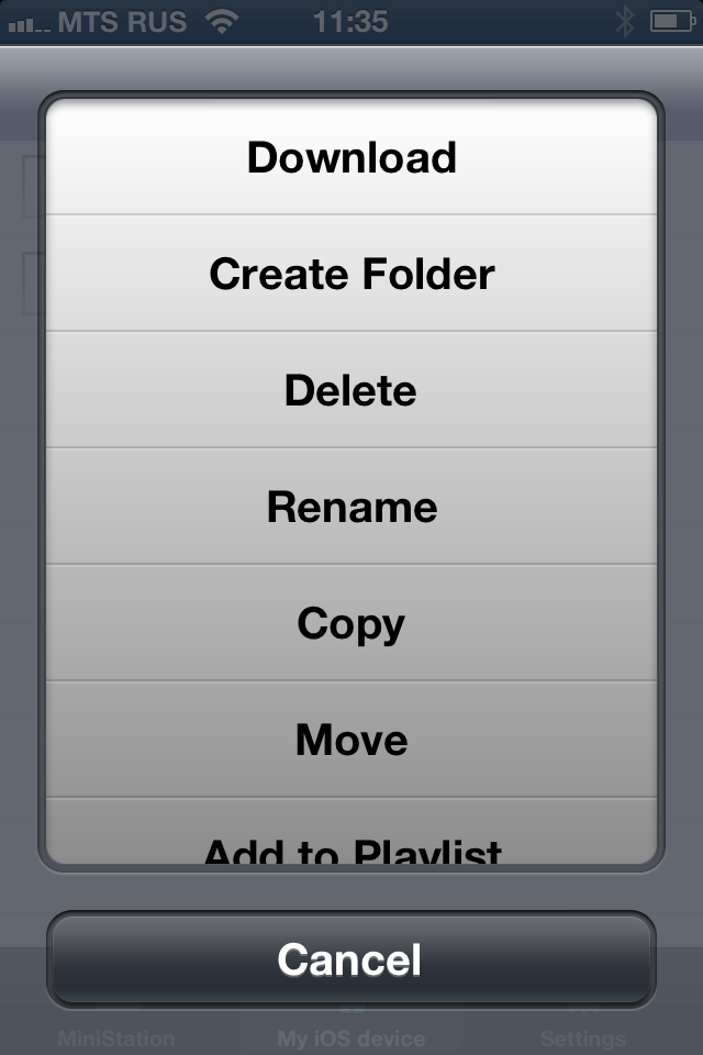 Что касается загрузки и скачивания файлов, то утилита организует собственное хранилище на смартфоне или планшете штатными средствами iOS и позволяет обмениваться файлами с ним. Дополнительно можно загружать на накопитель фотографии и видеоролики из галереи. Кстати, в этом разделе уже нет ограничения на размер файла, однако скачивание видеофильма перед просмотром на смартфон заметно усложняет процесс.