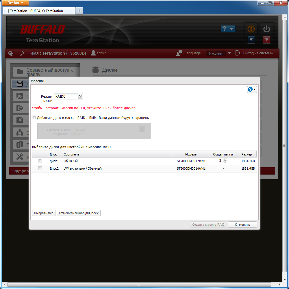 Здесь следует сделать важное замечание про использование винчестеров с данной серией сетевых накопителей. Все устройства поставляются с установленными дисками, компания предлагает также специальные комплекты на замену в случае возникновения неисправности или необходимости увеличения объема дискового пространства, причем диски в них проходят специальные дополнительные проверки у производителя. С технической точки зрения пользователь может установить другие модели жестких дисков, однако это будет являться нарушением условий гарантийного обслуживания.