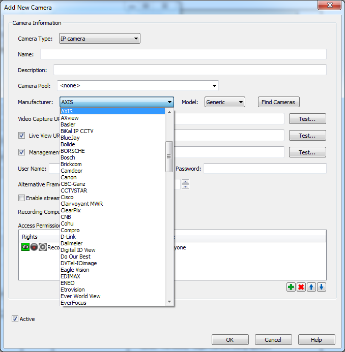 В самом накопителе настраивается только общая папка для работы сервиса и порт LAN для него (с технологией объединения сетевых портов данная функция несовместима). Все остальные опции, включая камеры, режимы их работы, параметры хранения записей, права пользователей и другие настройки, устанавливаются через специальные программы. Судя по списку в программе настройки камер, сервис совместим с несколькими сотнями моделей. Отметим, что утилиты имеют только английский интерфейс.